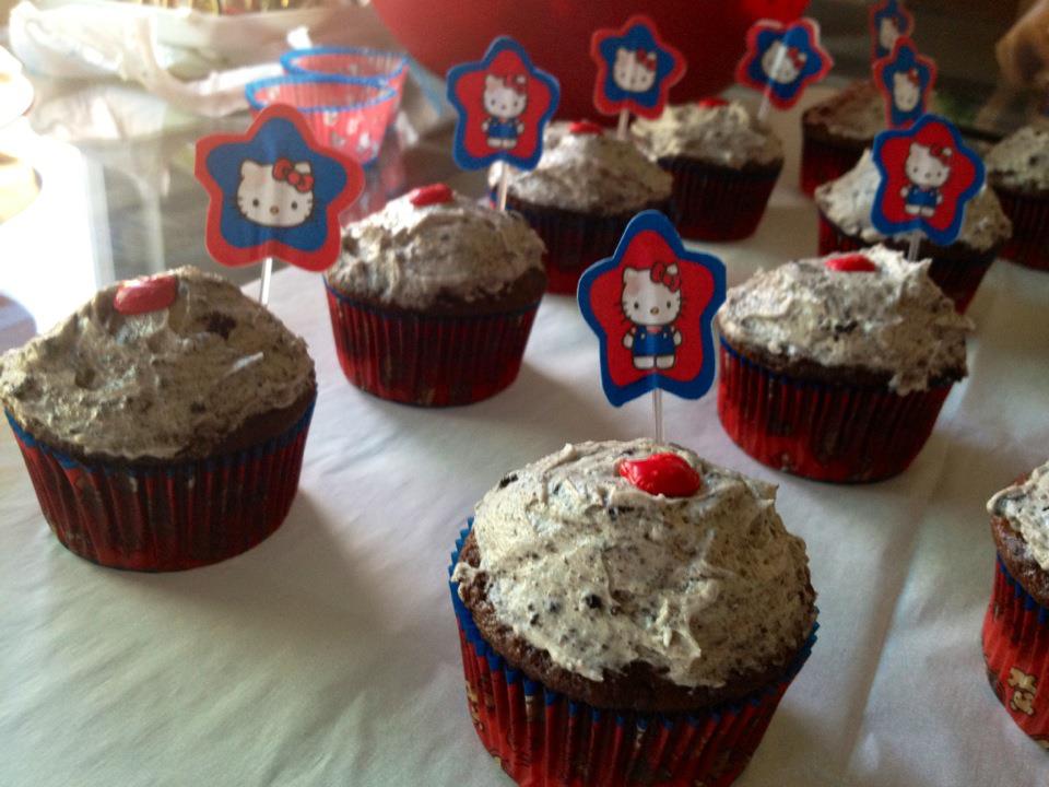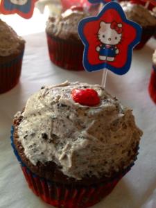 First post ever!! :) – Black & Yellow Oreo Truffle Stuffed Cupcakes w/ Oreo “Best I’ve Ever Had” Frosting (Hello Kitty Style)