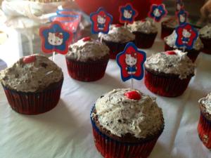 Now! On to happier times, I surprised the birthday girls with my Black & Yellow (Batman ♥) Oreo Truffle Stuffed Cupcakes w/ Oreo “Best I’ve Ever Had” Frosting. Dang, I really need to be more imaginative with these titles…this is a bit ridiculous. And since they both like Hello Kitty, I just HAD to buy this Hello Kitty cupcake set that came with cupcake liners, sprinkles, and little decorations. I was so excited and happy that they loved the cupcakes. It made the 4.5 hours totally worth it! I made 48 cupcakes total by the way so don’t worry :) Also, my need for perfection is no bueno for the cooking world. I must learn to become more efficient! ON TO THE RECIPE, FOLKS! :))